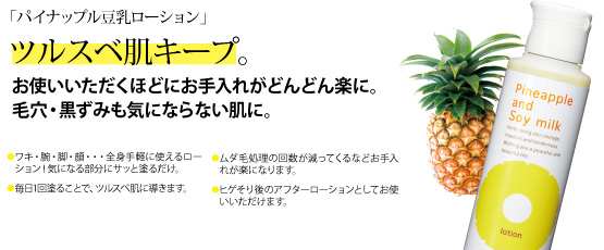 「パイナップル豆乳除毛クリーム」「パイナップル豆乳ローション」で自信のある肌を手に入れましょう♪