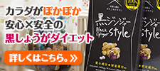話題の「黒しょうが」を独自製法で100%サプリメントにした唯一のサプリメントが「黒ジンジャーStyle」です。抗肥満、抗酸化作用に加えて基礎代謝、基礎体温の向上に役立つといわれております。
