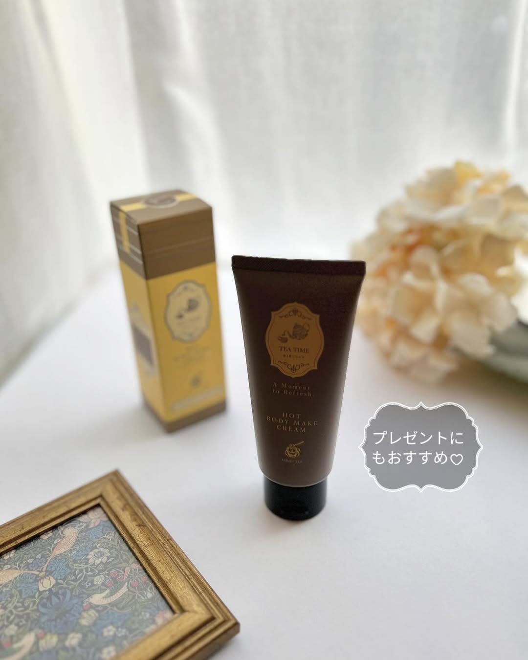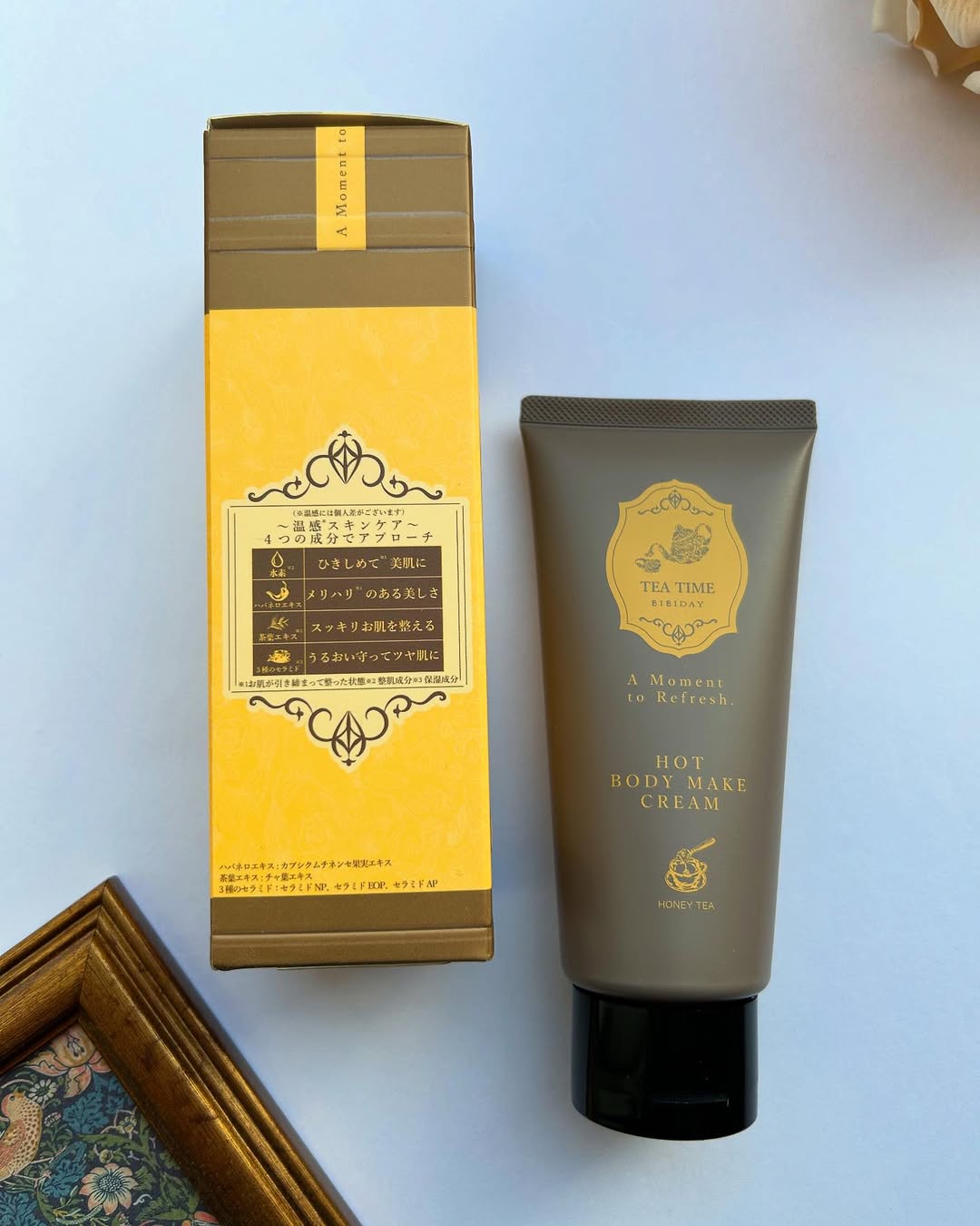 𖤘𖤘𖤘 ⚘⚘⚘ BIBIDAY・TEA TIME ホットボディメイククリーム ハニーティーの香り ⚘⚘⚘ まるで本物のような紅茶の香り! 超高保湿タイプの温感ボディクリームだよ♡ @bibiday_official これ紅茶の香りのボディクリームなの! はじめて使った時はびっくりと感動💛 香りが紅茶そのもの!! 紅茶好きにはたまらないクリームです♪ マッサージしながらティータイム🫖を感じられて 癒されるし、贅沢な気分になれるよ♪ 香りは3種類 ⚘ アールグレイの香り ⚘ ジンジャーティー ⚘ ハニーティーの香り 私は【ハニーティーの香り】を使ってるよ♡ 甘いはちみつの香りが優しくて癒される〜🍯 保湿成分にハチミツが配合されてるよ! 濃厚でこっくりとしたテクスチャーのクリーム 気になる部分をマッサージしながらつけていくと クリームから段々とオイル状のテクスチャーに 変化するの! 伸びが良いから塗りやすい♡ 高保湿でお肌がしっとりするし 温感クリームだから体もポカポカ温まるよ♪ 紅茶の香りに包まれて体も心もホッとする🍯 パケも紅茶缶をイメージしてて 可愛らしさと高級感があって めちゃくちゃ素敵なデザイン💛 このデザイン好きです♡ プレゼントとしても喜ばれること間違いなし! とってもおすすめです♡ ぜひぜひチェックしてみてね✨ 𓇬𓇬𓇬𓇬𓇬𓇬𓇬 #PR #ツーウェイワールド株式会社 #BIBIDAY #TEATIME #紅茶の香り #紅茶の香りのボディクリーム #ボディクリーム #温感クリーム #マッサージクリーム #スリミング #コスメレビュー #monipla #2wayworld_fan