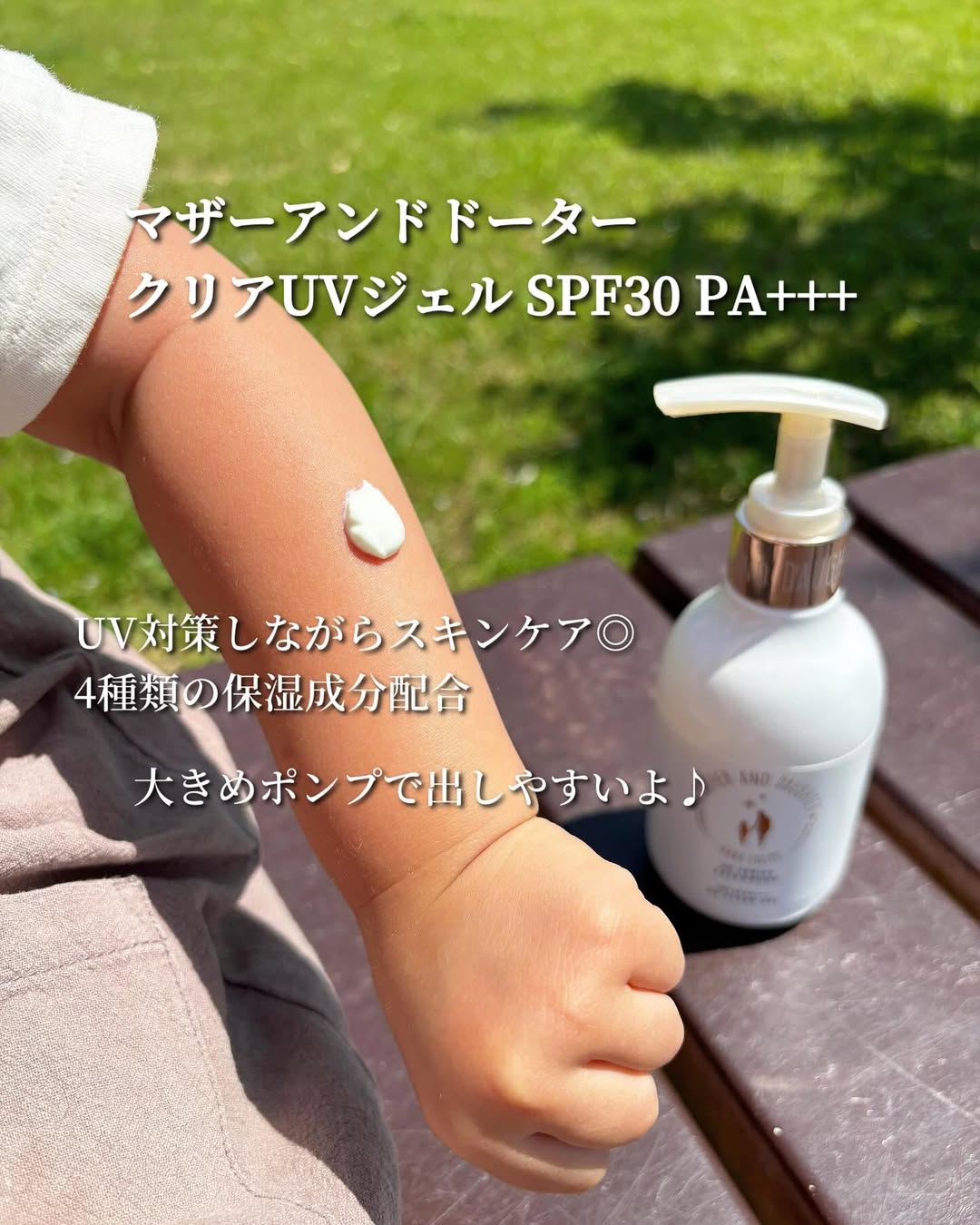 * \1歳から使える/ UV対策しながらスキンケアできる日焼け止め☀️ ✼••┈┈┈┈┈┈┈┈┈┈┈┈┈┈┈┈••✼ マザーアンドドーター クリアUVジェル SPF30 PA+++ 200g @mother_and_daughter_official ✼••┈┈┈┈┈┈┈┈┈┈┈┈┈┈┈┈••✼ 子どもから大人まで親子で使える 顔・体用の大容量日焼け止めジェル✨ ポンプ式で使いやすいの!! 我が家では玄関に置いて お出かけ前に塗ってるよ◎ スーッと伸びてさらさらすべすべ! ベタつきもなくて不快感ないから 子どもも嫌がらず塗らせてくれるの☺️ 美容成分配合でスキンケアにもなるし 1歳から使える肌へのやさしさが嬉しい🌿 石けんで簡単に洗い流せるのもいいよね🥰 公園にもお散歩にも! 親子で使ってみてね♡⃛ ̖́- #PR @mother_and_daughter_official #ツーウェイワールド株式会社 #マザーアンドドーター #日焼け止め #日焼け対策 #UVケア #UV対策 #UVカット #紫外線 #紫外線対策 #紫外線カット #コスメ #新作コスメ #monipla #2wayworld_fan モニターとしてお試しさせていただきました。 ありがとうございます☺︎