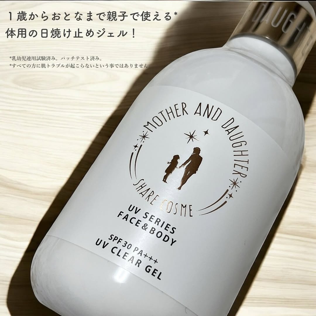 MOTHER AND DAUGHTER クリアUVジェル 200g SPF30/PA+++ ーーーーーーーーーーーーーーーーーー 1歳からおとなまで親子で使える* 体用の日焼け止めジェル! 押しやすい大きめのポンプで 手軽にサッと塗ることができて便利! 白くならない透明処方で 顔や体に塗っても白浮きせず使え、 服についてしまっても白くならないのが嬉しい ゆるく伸びの良いテクスチャーで きしみもなく塗ってすぐにサラッとする 腕などの広範囲にも塗り広げやすかったです そして、美容成分配合で UV対策しながらスキンケア効果も💫 ⚪︎4種類の保湿成分配合 ヒアルロン酸Na、グリセリン、水溶性コラーゲン、水溶性プロテオグリカン(保湿成分) ⚪︎8種類の植物エキス配合 エーデルワイス花/葉エキス、カンゾウ根エキス、シャクヤク根エキス、カミツレ花エキス、アロエベラ葉エキス、ダイズ種子エキス、アーチチョーク葉エキス、サンザシエキス(保湿成分) ⚪︎8種類の植物エキス配合 エーデルワイス花/葉エキス、カンゾウ根エキス、シャクヤク根エキス、カミツレ花エキス、アロエベラ葉エキス、ダイズ種子エキス、アーチチョーク葉エキス、サンザシエキス(保湿成分) パラベン、アルコール、鉱物油、 着色料不使用で敏感肌の方にもおすすめです *乳幼児連用試験済み。パッチテスト済み。 *すべての方に肌トラブルが起こらないという事ではありません。 @mother_and_daughter_official #PR #ツーウェイワールド株式会社 #マザーアンドドーター #日焼け止め #日焼け対策 #UVケア #UV対策 #UVカット #紫外線 #紫外線対策 #紫外線カット #コスメ #新作コスメ #monipla #2wayworld_fan