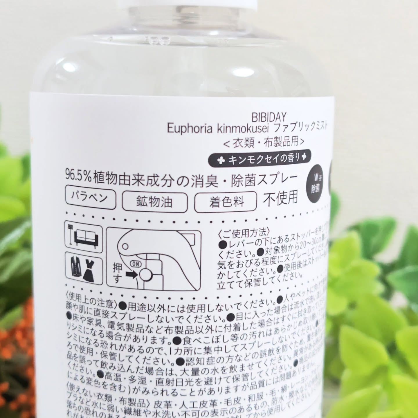 やさしくキンモクセイが香る BIBIDAY・Euphoria 『キンモクセイ フレグランス ファブリックミスト』 ソファーやカーテンなど、お部屋の布製品や衣類の嫌なニオイをおさえて やさしいキンモクセイの香りがふわっと広がります😊 カーテンなどには30センチくらい離したところから 出かける前、ハンドタオルに軽くスプレーすると きんもくせいの香りと一緒に歩く気分になれました✨️ 衣類・お部屋・車内などへの香りづけ・除菌(※)・消臭(※)・静電気防止に ※除菌~銀イオン・グレープフルーツ種子エキス・植物由来エタノール 全ての菌に対して効果があるわけではありません。 ※消臭~銀イオン・チャ乾留液・カキタンニン 250ml #PR #ツーウェイワールド株式会社 #BIBIDAY #金木犀 #きんもくせい #金木犀の香り #ファブリックミスト #香りのある暮らし #monipla #2wayworld_fan @bibiday_official