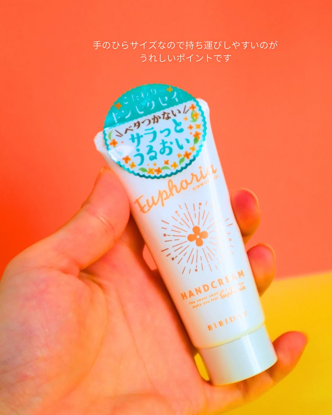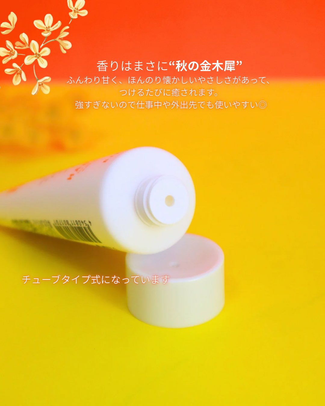 BIBIDAY・Euphoria 「キンモクセイ ハンドクリーム」🌼30gを 使ってみたのでレビューします! ふんわり甘い金木犀の香りに包まれる ハンドクリームです! まずパッケージは、コンパクトで持ち歩きやすいチューブタイプ。 真っ白なベースに上品なデザインがあしらわれていて、 デスクに置いてもポーチに入れても気分が上がる見た目です。 容量30gで小ぶりなので、お仕事中や 外出先でも気軽に塗り直せるのが便利でした🥺💓 テクスチャーは、最初は少しこっくり感があるテクスチャー 手に伸ばすとスルッとなじんでベタつきにくい使い心地です! 塗った直後はしっとりした使い心地ですが すぐに、さらっと整ってスマホやパソコンにも すぐ触れるくらいでした(*ö*) 香りはまさに“秋の金木犀”🏵 ふんわり甘く、ほんのり懐かしいやさしさがあって、 つけるたびにホッとします♪ 強すぎないので仕事中や外出先でも使いやすく、 ハンドクリームなのに香水みたいに「いい香りだね」と 言われることもありました😘💖 特に、パソコン作業のケアにお気に入りです! ベタつかないからすぐに作業に戻れるし、 香りでリラックスできるのも◎ お値段もプチプラで続けやすいので、 季節の変わり目や香りのあるハンドクリームが 好きな方にぴったりだと思います。 【おすすめな人】 ✔ 金木犀の香りが好きな方 ✔ ベタつきが苦手でサラッと仕上がるクリームを探している方 ✔ デスクやポーチに入れて持ち歩きたい方 ✔ 香り付きハンドクリームを手軽に試してみたい方 気になる方は、ぜひ チェックしてみてくださいね˗ˋˏ ♡ ˎˊ˗ #PR #ツーウェイワールド株式会社 #BIBIDAY #金木犀 #きんもくせい #金木犀の香り #乾燥対策 #ハンドクリーム #ハンドクリームマニア #monipla #2wayworld_fan