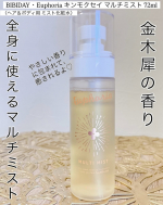 BIBIDAY Euphoria キンモクセイ マルチミスト 金木犀の香りの全身に使えるマルチミスト。 ヘアコロン・ヘアミスト・リフレッシュミストやボディミストとして使用できます。 傷んだ髪にも素早く浸透し、うるおいを守ります。ドライヤーの熱から髪を守る役目も 金木犀の香りめちゃ香ります かなり好きな香りなのでとっても癒やされるー きめ細かい微細ミストで全身に香ります 肌にもうるおいをキープ。 これから乾燥が気になる季節、全身に使えるミストは嬉しいですね #PR #ツーウェイワールド株式会社 #BIBIDAY #金木犀 #きんもくせい #金木犀の香り #ヘアケア #ヘアミスト #ボディケア #ボディミスト #マルチミスト #monipla #2wayworld_fan 2025/09/30