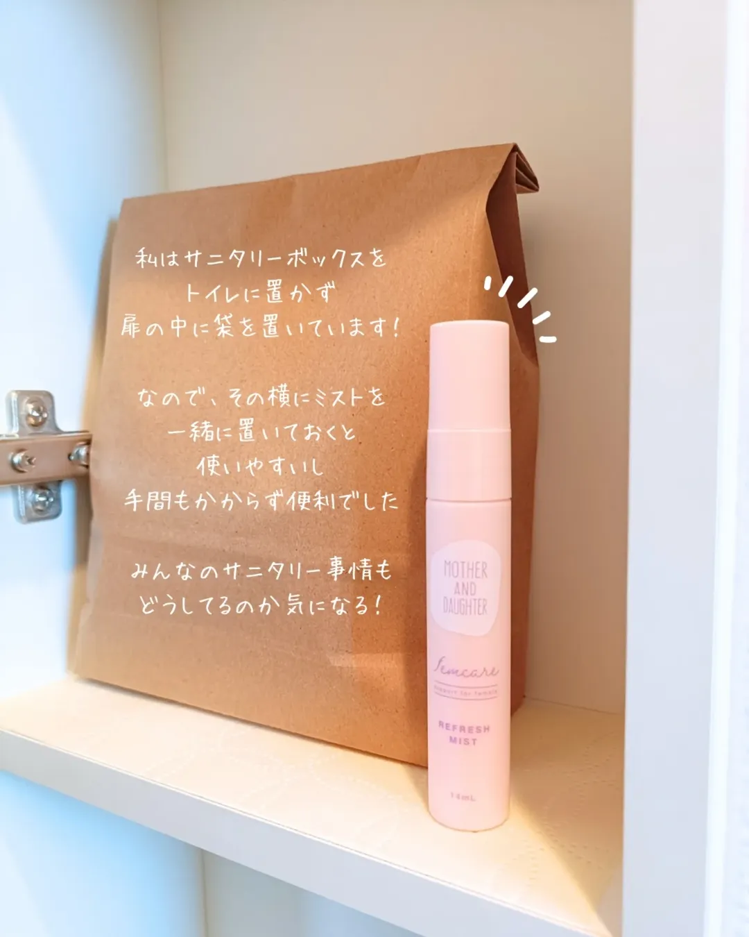トイレットペーパーにシュっとして拭き取るだけで手軽で、不快感緩和できるの嬉しかった♡