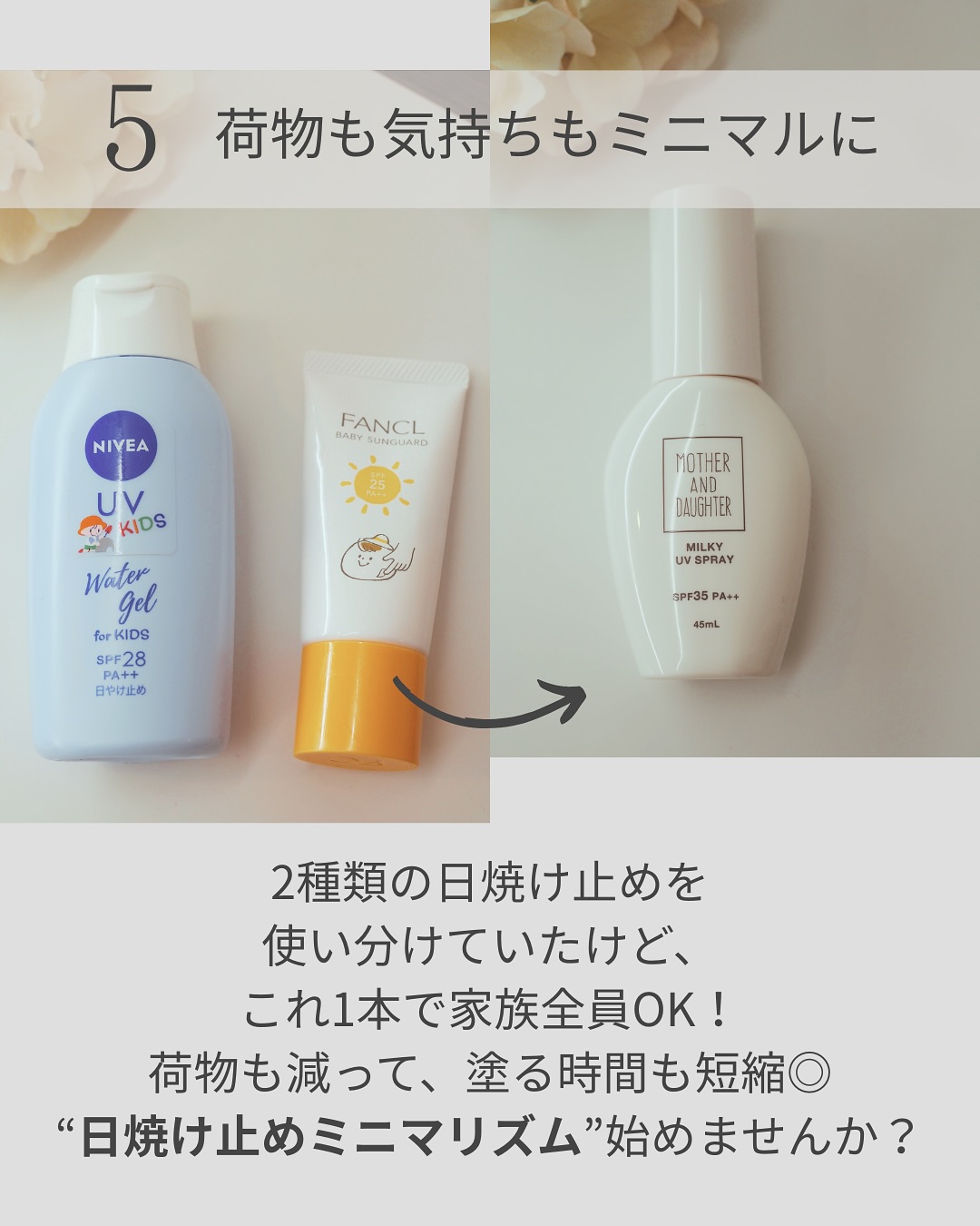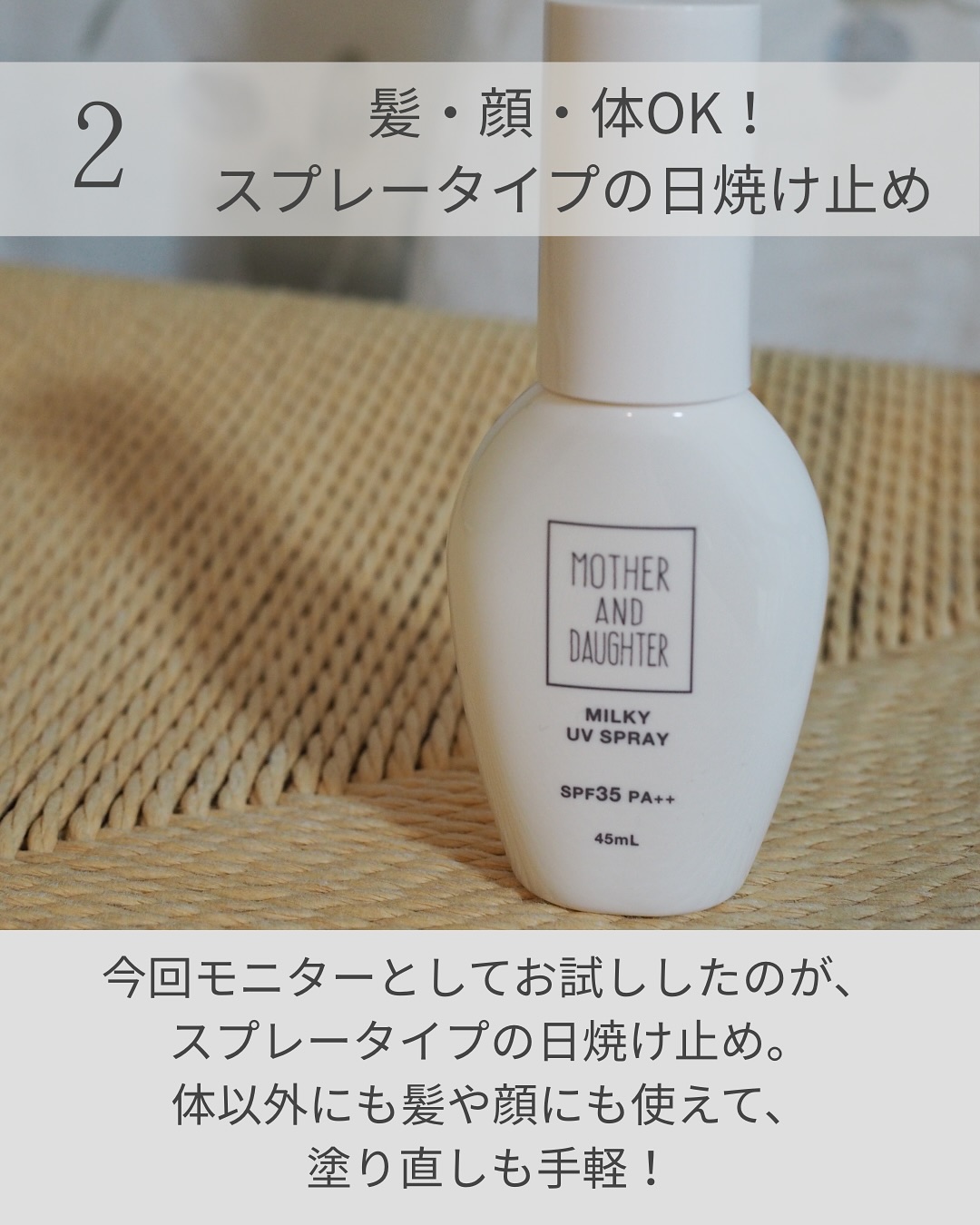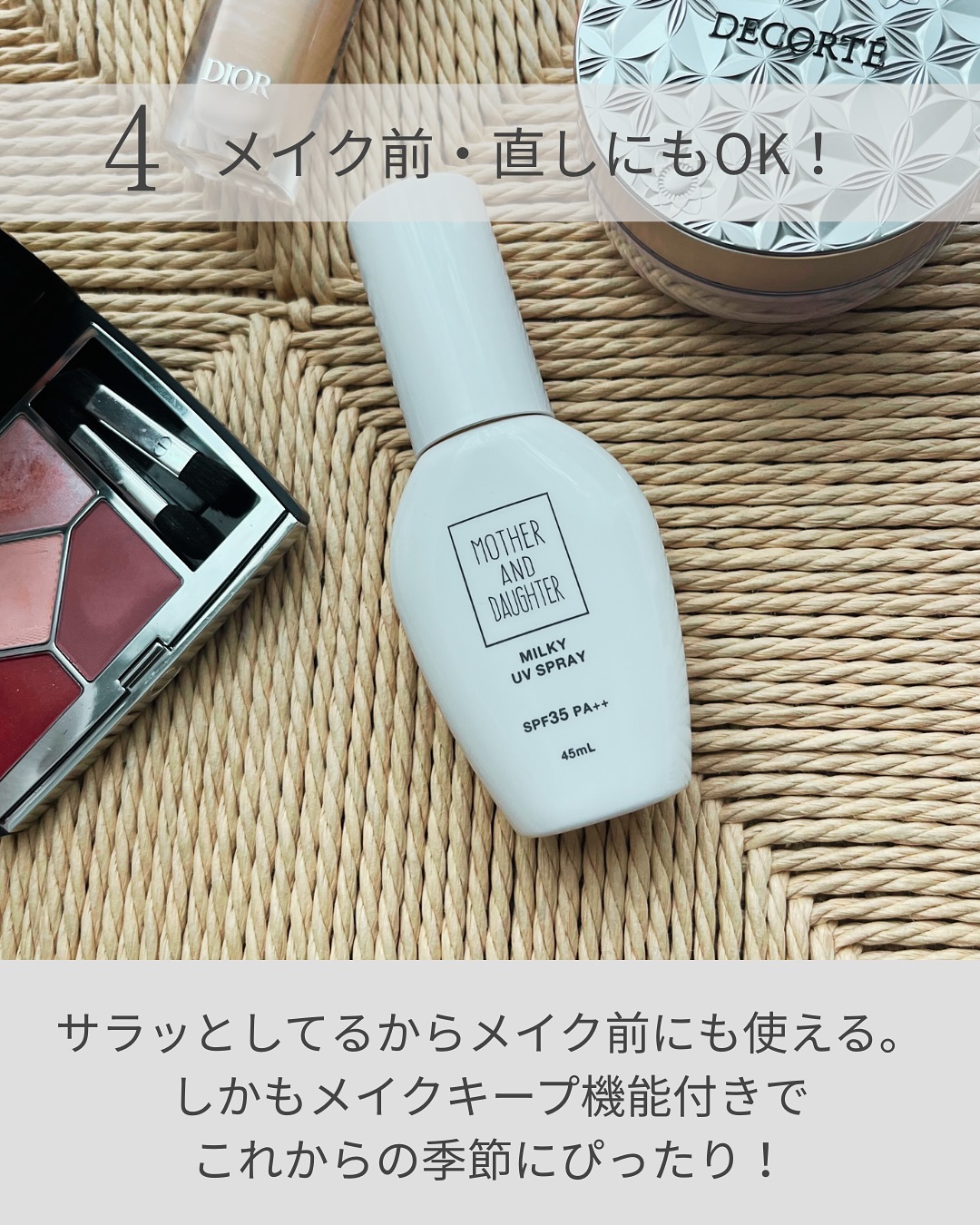 UV対策をしながらお肌ケアまでできちゃいます。べたつかないサラっとした使用感で、白浮きもしないので、日焼け止め特有の軋みが苦手な方にもおすすめのテクスチャーです。