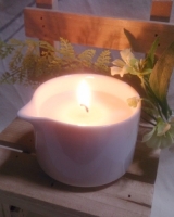 キャンドルが溶けたら、マッサージオイルとしてお肌に塗ることができる<ヴィヴァルー>トライブ アロママッサージキャンドル。シアバターを使ったお肌に優しいイタリア生まれのアロマキャンドルです。