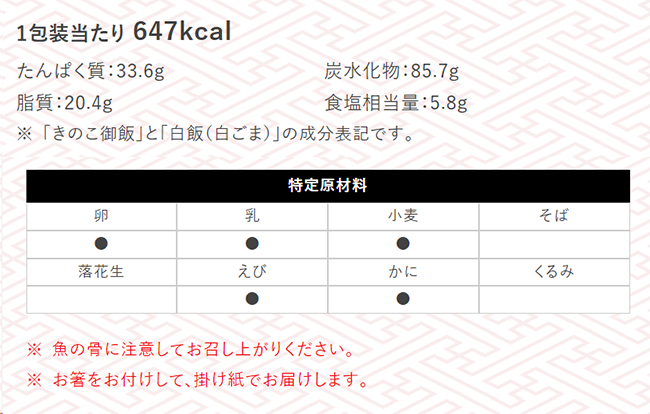 ※写真の御飯は「きのこ御飯」と「白飯(白ごま)」です。