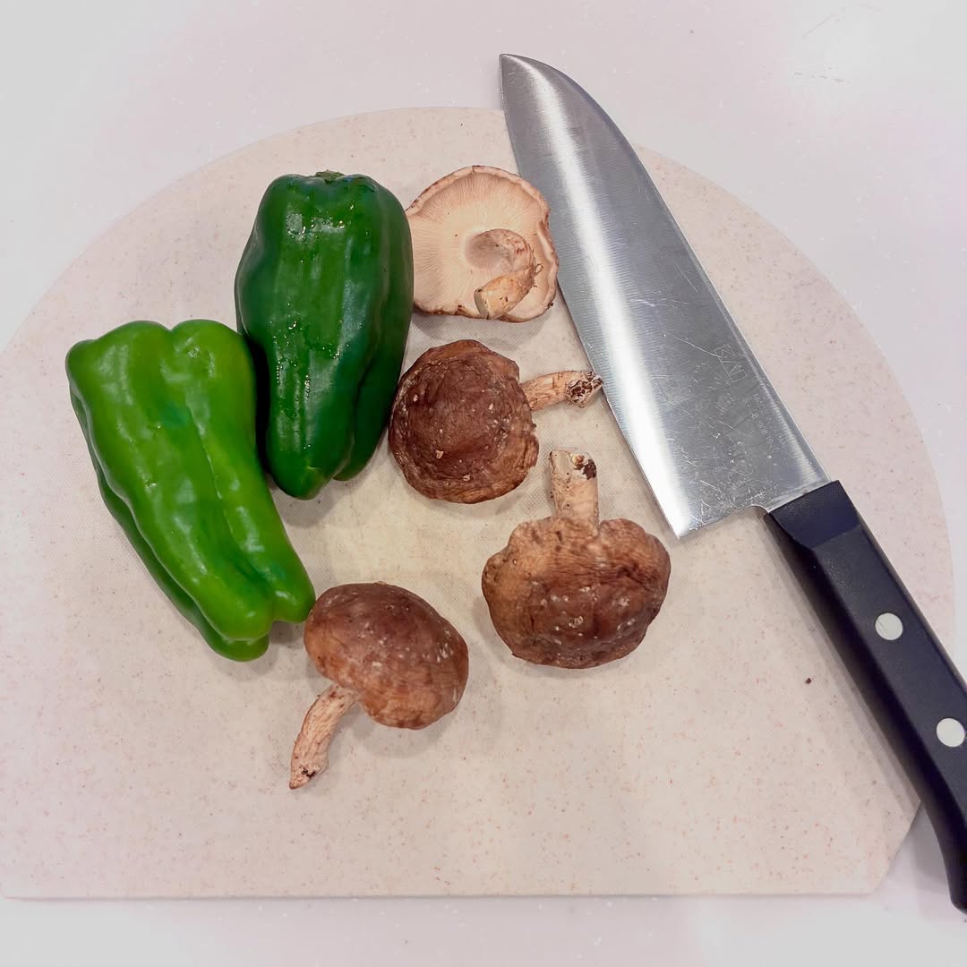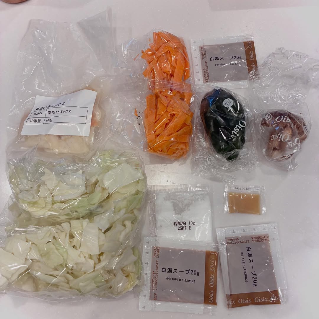 キャベツとか嵩張る食材は既に切られてて、今回自分で切ったのはピーマン🫑と椎茸🍄🟫だけだよ!調味料もほとんど準備されてるからめちゃくちゃ便利で楽✨