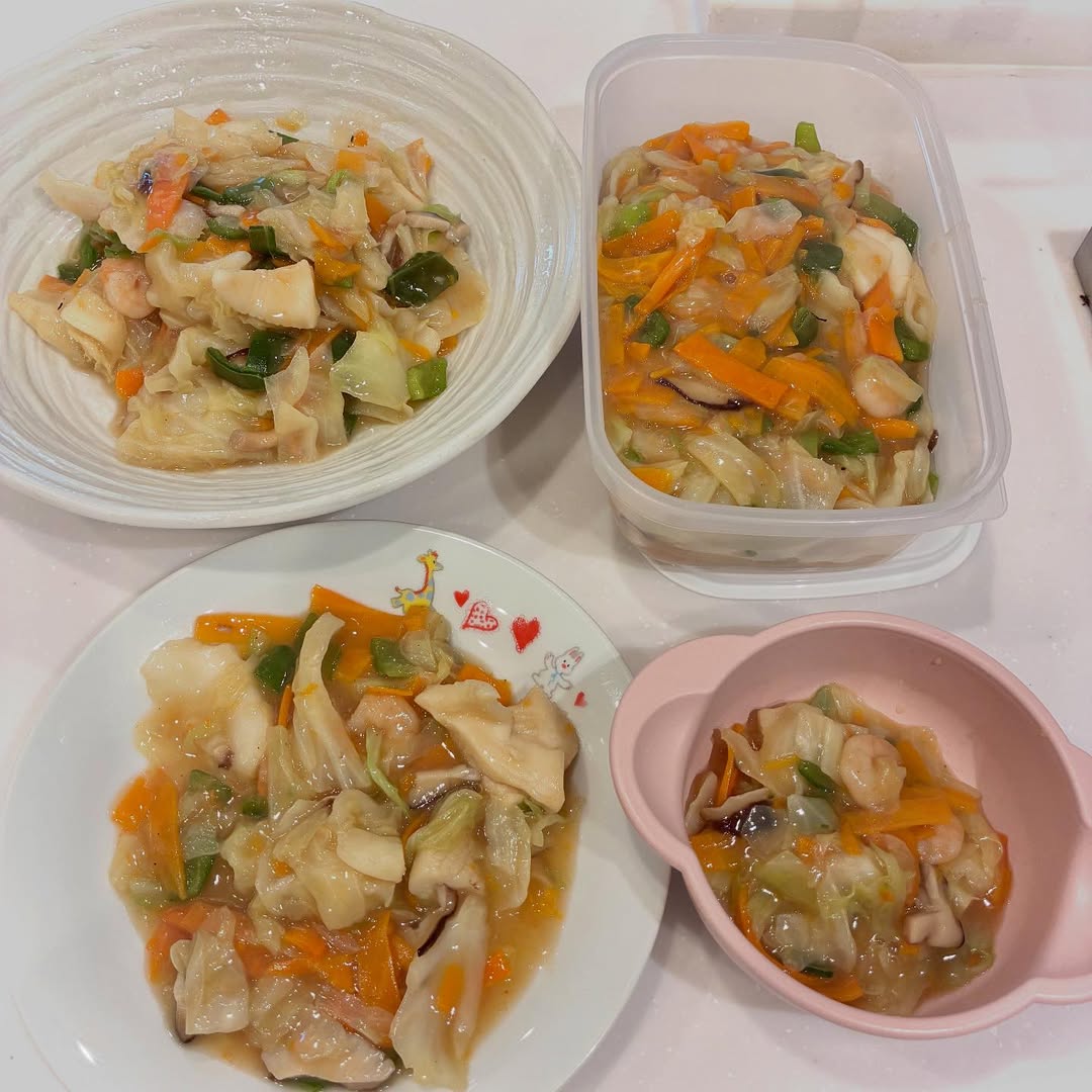 私は普段作らないような海老やイカが入った『海鮮八宝菜』にしたよ!美味しくて少食の👧も完食してくれたよ🙌