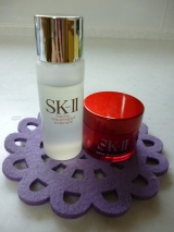 文字色美容大好きアラサーママです今、憧れのSKⅡの7日感実感キットを使っています【セット内容】フェイシャルトリートメントエッセンス(30mL)スキン シグネチャー(15g)フェイシャルトリートメントマスク(1枚)コットン10枚お手入れガイド(右)フェイシャルトリートメントエッセンス(左)… 2011/10/05