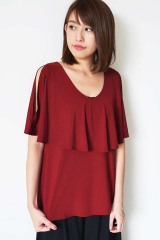 女性らしさが簡単に叶う盛り袖カットソー。トレンドのフレアー袖は、オープンショルダーとしてや、ざっくりカッティングしたようにも変形する2WAYデザイン。二の腕をカバーしたり、胸元から袖にかけて大きなラッフルでフェミニンな表情を作ります。スタイリングに合わせてカジュアルやフェミニンも楽しめます。