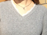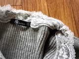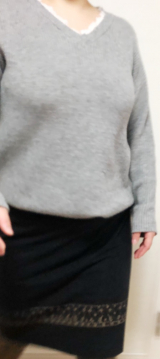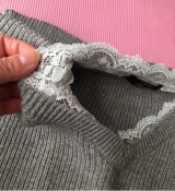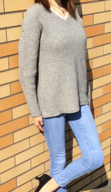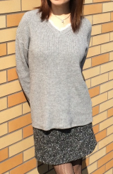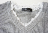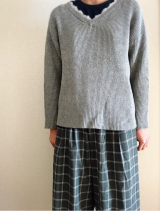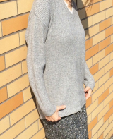 アンゴラタッチ仕立てのVネックニット。襟ぐりに沿ってレースを加えて女性らしいポイントを効かせたデザイン。動きやすいドロップショルダーや少しリラックスしたサイズ感です。カジュアルやフェミニンまで着まわしでき、デニムやトレンドのグレンチェツクボトムスなど、幅広く楽しめます。