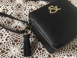 まるでポーチのようなミニマムなサイズが女の子らしいショルダーバッグ。パイピングでメリハリの効いたスクエアフォルムに、安心感のあるファスナー開きで収納できます。汚れの目立ちにくいシボ感に、&チャームがONして、シンプルながらも大人っぽさを兼ね備えています。横には大ぶりのタッセルチャームがポイントに。※ショルダー調節可