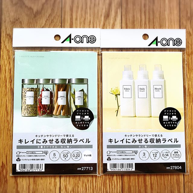 #Aone #エーワン #キレイにみせる収納ラベル #キレイにみせる#収納ラベル * ①エーワン™ キレイにみせる収納ラベル 5シート入り 水に強いマット紙 品番:27713 ラベルサイズ:40×24mm ラベル数:50枚 手書き可能 #マット紙タイプ ②エーワン™ キレイにみせる収納ラベル 3シート入り 水に強い耐水フィルム 品番:27804 ラベルサイズ:41.5×59mm ラベル数:12枚 #耐水フィルム * ◎豊富なテンプレートで、おしゃれな収納ラベルがスマホアプリとプリンタで簡単に作成できる! ◎水に強いのでキッチンや洗面所でも使える! ◎マット紙タイプは鉛筆、ボールペン、マジックで手書きをしても耐水性は変わらない! ◎ラベルを容器からキレイにはがせるので容器の再利用もできる! #ラベリング #収納 #ラベル屋さん #モノトーン化 #エーワン #monipla #Aone_fan