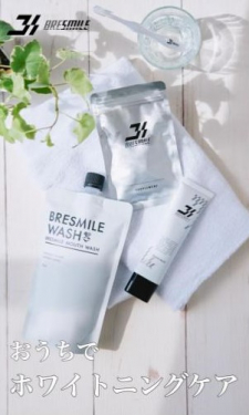 ブレスマイルウォッシュは、10秒ゆすぐだけでお口の健康と爽やかな息をかなえる薬用マウスウォッシュです。殺菌と抗炎症に優れた2種の有効成分が口腔内を殺菌し、口臭を防止、歯周病を予防します。ブラッシングすることでホワイトニング効果も期待できます。