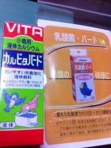 カルビタバード(小鳥用液体カルシウム) 50ml 400円前後きっとぶろぐをご覧になっている方はもちろん知っているかとは思いますがわたしのいえには文鳥桜2、白2います最初は桜と白1羽ずつだったんですが今年卵を産みそして4羽が孵化そのうちの2羽は里親様のおうちに迎えられ残り2羽は私たちが見守っ… 2012/07/05