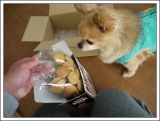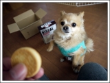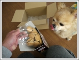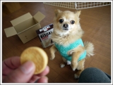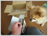 我が家に荷物が届きました! おもむろにポン!とちび太の前に え?僕の?と不審げ お前のじゃない時は、 飛びついて来る癖に! なんとなくペロちょしちゃいます! ウマウマだといいなぁ ねぇこれなんです… 2012/04/22