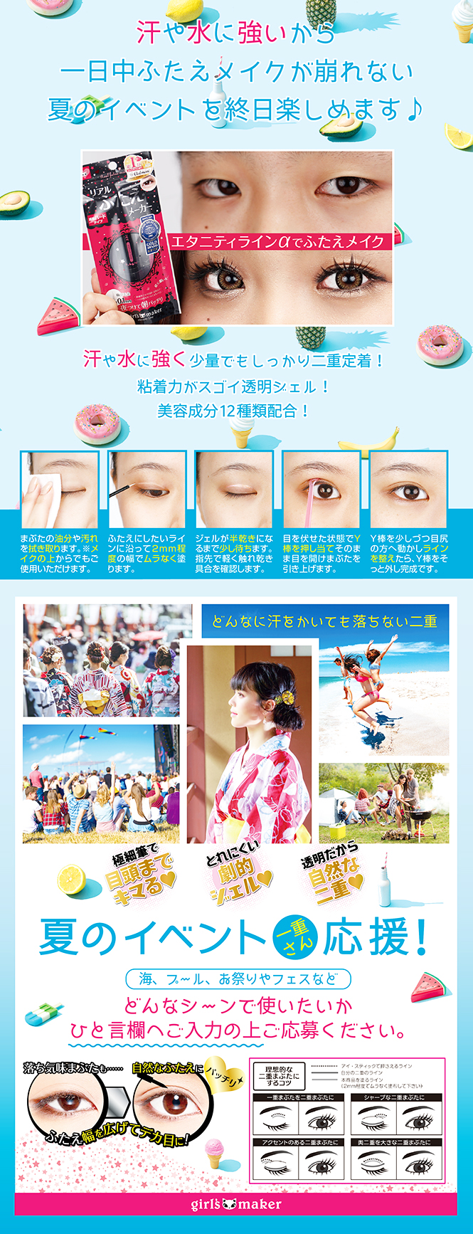 ガッツリ密着ジェルライナー「ガールズメーカーエタニティラインα」は、寝ている間のクセづけ用にも日中のふたえメイクにも使用できる強力二重アイテムです。