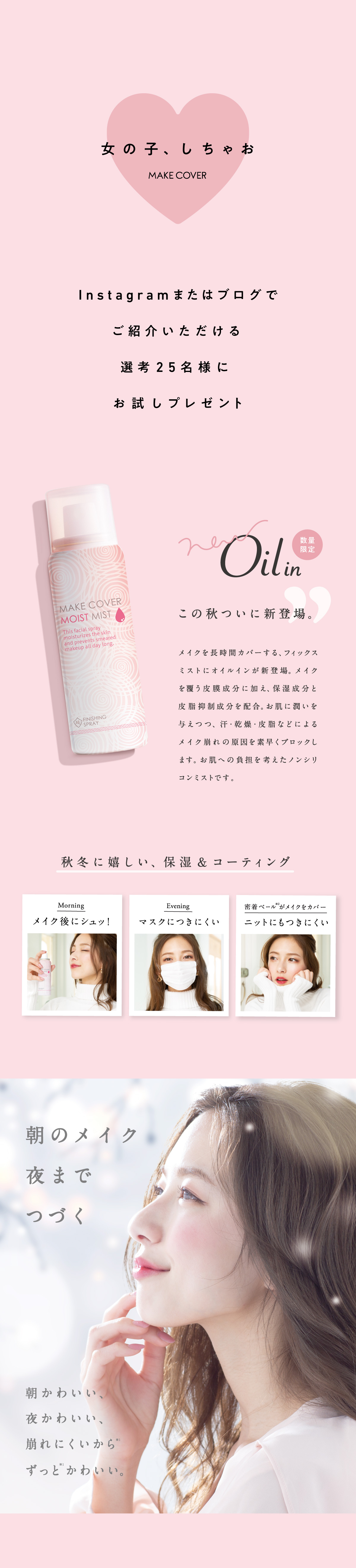 【数量限定]メイクカバーうるおいミストのオイルイン登場。