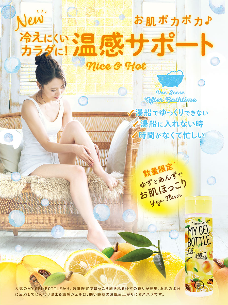 ピクニックにはコレ!! って言いたくなるような可愛らしい マイボトル 【MY GEL BOTTLE YUZU】 実はこれドリンクじゃなくて、保湿ジェルなんです🥰💕 しかもほっこり温感のある数量限定の 2019/12/28