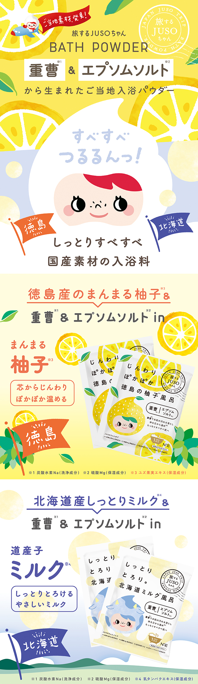 GR株式会社 さまより 可愛い入浴剤 🛁🧴 しっとりとろり。北海道ミルク風呂🐮とじんわりぽかぽか徳島の柚子風呂🍊 どちらともすごくいい香りで癒されるょ❤️ #旅するJUSOちゃん #ナクナーレ #JUSOBATHPOWDER #重曹入浴剤 #ボディの毛穴汚れ #monipla #GRinc_fan 2020/11/25