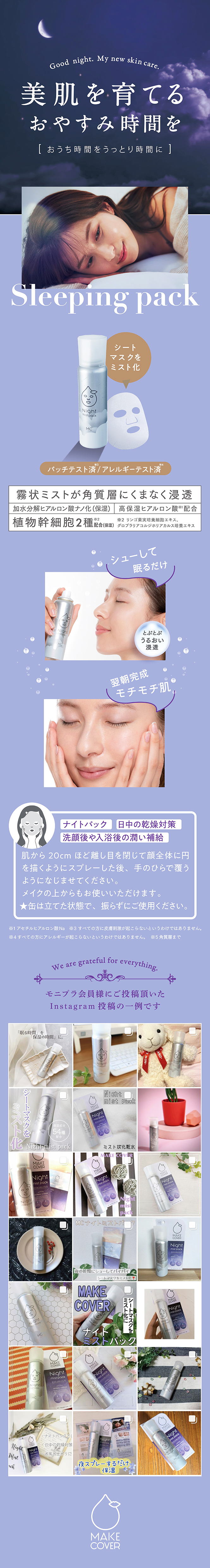 NIGHT MIST PACK 夜寝ている間に肌をどうにかしてくれ!!て気持ちでこのナイトパックを顔に吹きかけてます🐁 粒子が細かくて気持ちいいミストシャワー🚿寝ている時ずーっと潤いを閉じ込めてくれるので、手放せないアイテムです🌚 #MAKECOVER #MCミストパック #ミストでパック効果 #シートマスク級の潤い #睡眠中は保湿タイム #makeupdolls #photographs #monipla #GRinc_fan #photodaily 2022/12/08