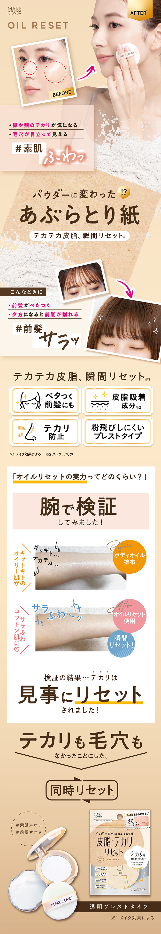 あぶらとりパウダー、仕上げパウダー、化粧直しパウダー、ハイライトの4役で使用可能で、 超微粒子パウダーが余分な皮脂と毛穴をしっかりカバーしてくれます。