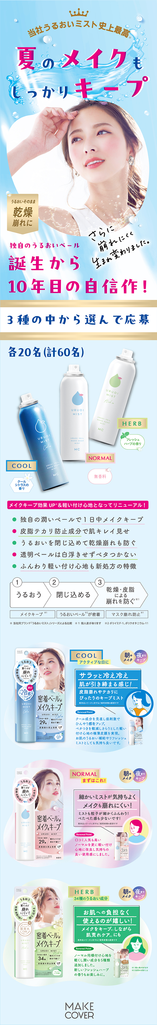 粒子状のミストでメイクの上から3秒スプレーするだけで化粧崩れ、外的乾燥を防ぐフィックスミストシリーズがメイクキープ効果UP(従来品比較)&軽い着け心地となってリニューアル!