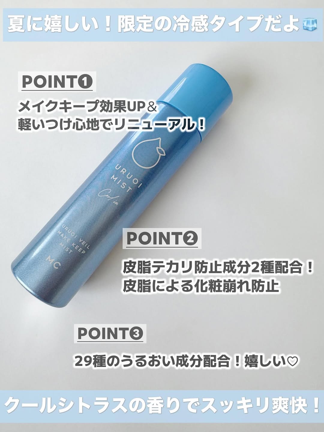 他の投稿をみる ▷▷@nagi_skin_care メイクカバー うるおいミスト+ 65g ¥1430(税込) メイクキープ効果UP&軽いつけ心地となって リニューアル♡ 肌表面に透明なベールのような膜を形成して くれるので夏のメイクもしっかり守れる👏🏻 皮脂テカリ防止成分2種配合で皮脂による 化粧崩れを防止してくれます💓 お肌に嬉しい29種類のうるおい成分も 配合されてます✨ ミストは細かくてつけ心地が良いのは もちろん!冷感がすごくてほんとに爽快👏🏻✨ この夏はこれで乗り切れそう〜👌 やっぱりメイクキープミストをすると テカテカする感じが気にならないのと 長時間、朝のメイクのまま過ごせるので 私は必需品で持ち歩いてます!! 気になる方は是非チェックしてみてください☑︎ #PR #GR株式会社 #MAKECOVER #メイク崩れ防止 #メイクキープミスト #うるおいミストクール #makekeepmist #フィックスミスト #monipla #GRinc_fan
