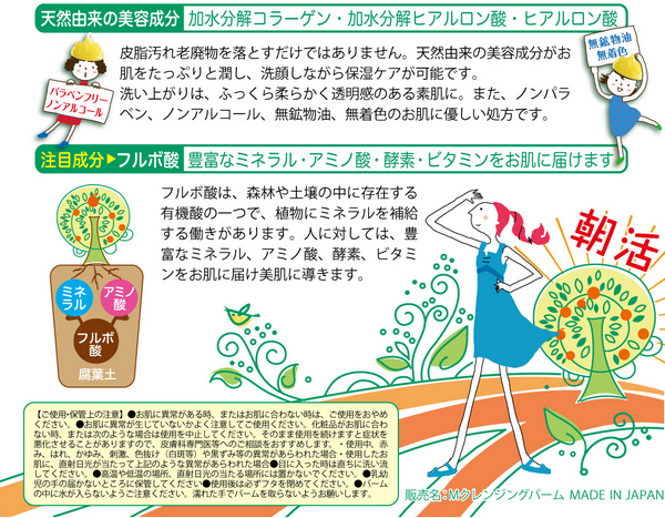 ●お肌に異常がある時、またはお肌に合わない時は、ご使用をおやめください。●お肌に異常が生じていないかよく注意してご使用ください。化粧品がお肌に合わない時、または次のような場合は使用を中止してください。そのまま使用を続けますと症状を悪化させることがありますので、皮膚科専門医等へのご相談をおすすめします。・使用中、赤み、はれ、かゆみ、刺激、色抜け(白斑等)や黒ずみ等の異常があらわれた場合・使用したお肌に、直射日光が当たって上記のような異常があらわれた場合●目に入った時は直ちに洗い流してください。●高温や低温の場所、直射日光の当たる場所には置かないでください。●乳幼児の手の届かないところに保管してください●使用後は必ずフタを閉めてください。●バームの中に水が入らないようご注意ください。濡れた手でバームを取らないようお願いします。