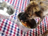 ドッグフードブランド「ホリスティックケイナインキャビア」では、ドライフードの他に缶詰ウェットタイプやサプリメント、おやつなども出ています。前回ご紹介した同ブランドの鴨肉ドライフードとあわせて現在使っているのが、フードにふりかけるタイプの野菜サプリメント。 ベジタブルMIXアルカリ性の食材を中心に厳選された15種類の野菜を乾燥させたものなんです良質の原材料=15種野菜のみを使用し、合成着色料や香料、保存料などは無添加。このカラフルな色もそれぞれの食材の持つ自然な色なので安心使い方は簡単。お水やお湯で戻してから、いつものフードに混ぜるだけそのまま野菜スープ代わりにもなるよう、少し多めのお湯で戻しました。お湯に野菜の栄養や色が溶けだしていて、野菜だけで取ったダシのような感じ15~20分ほど置くと、カリカリで小さかった野菜たちがやわらかく倍量ほどになります。これをドライフードにかけてスープごはんのような感じ。ほんのりやさしい野菜スープのような香りが広がります。チビさんたちも準備している間からソワソワ待ちきれないように我慢してましたまずは~・・・お姉ちゃんから。いつもならドカ食いしてものの1分ほどで食べ終わる子たちですが、ドライフードとは違う食感や香りのものが入っているからかひとつひとつニオイを嗅いだり舐めて様子を見たりしながらゆっくりと食べていましたドカ食いって身体のためにも悪いからいつも少しずつやったりしていたのですが、これだとドライフードと野菜とスープを交互にも食べてくれるので消化にも良さそう妹ちゃんもいつもよりお行儀よく上品に少しずつ食べてたのには可笑しかった何も入れなくてもいつもこれくらいのスピードで食べてくれたらいいなぁ。一般的なフードに比べて長時間の高温加熱とかではないのと乾燥タイプなので野菜の旨みや栄養、美味しさがギュッと増しているので、いつものフードだけでは補えない栄養も効率よく摂れそうお湯などで戻すだけで使えるので、食欲がない時のスープにもピッタリこれを準備している間にお肉やお魚などを茹でたり蒸したりしてほぐしたものに最後に野菜スープをかけて出すだけでも良さそう何も食べてくれない時でも、これなら香りや味がアップするので反応してくれそうですこのベジタブルMIXと、天日干ししたケルプの乾燥ケルプの2種類が出ているので、今回のトライアルパックを使い終わったら2種類のレギュラーサイズを買ってW使いの栄養補給サプリとして併用していくのも良いなぁって思ってます K9キャビア・ルポ モニプラ事業部ファンサイト参加中