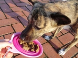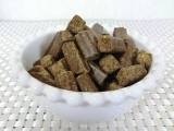 最近は毎回のように魅力的なドッグフードをお試し&レポートしているのですが今回はちょっと変わった、今までにないような海外産ドッグフードをお試ししてみました。 LUPO NATURALLUPO NATURAL(ルポナチュラル。以下、ルポ)はエコ関連に積極的に取り組んでいる。世界でも有数の環境先進国ドイツで生まれました。ドイツは自然環境に関する取り組みと同様、動物への関心や意識が高い国でもあります。今回ご紹介するルポを作っているメーカーは、「自然と調和」を会社の基本方針とした商品開発を行っていて、天然素材を使用すること、動物実験を行わないこと、遺伝子組み換え食品および人工添加物を使用しないことをポリシーにしています。そして地元住民の雇用や、CO2排出量削減のための取り組みとして水力発電を導入。地球(自然環境)、生き物、人間すべてにとってやさしい取り組みをされています。このドッグフードにもそんな理念や取り組みがしっかりと活かされています。まずは原材料。スイスの農場で放し飼いされた鶏、ポテト、フィッシュ、玄米、5種野菜を中心に、ホリスティックケアフードとしてもお馴染みの植物が豊富に配合されています。いくら良い食材を使っていても製法や管理などが悪ければ意味ないですよね。ルポは食材の栄養が壊れにくい50度以下の環境で作られた後、冷蔵コンテナに入れられて日本まで空輸されているんです。空輸することで鮮度保持と輸送時間の短縮に繋がり、賞味期限は8カ月。一般的な一括大量生産される安価なドッグフードとは大きな差。大事な愛犬のために安心して与えられる安全なフードですね今までにも色々なメーカーのドッグフードを手にとってきましたが、ルポはその形状が斬新。平たくもなく丸でもなく小ぶりでもなく・・・・。例えるならお菓子のキットカットを短くした感じですかね。植物オイルが入っているとはいえ、素材や製法にこだわっているのでまったくベタベタしてなくて直接触っても手が汚れません。これなら暴食防止のために、オヤツ感覚で1つずつでも食べてもらうこともできるので、ご褒美やトレーニングのオヤツとしても手軽に与えられます。(1日分の食事量を調整)まずはお姉ちゃんから。袋を開けた時から既にいつもと違う美味しそうな香りにつられたのかめっちゃ嬉しそうに催促してきましたいつもと違う形状や大きさに一瞬戸惑うような感じでしたがしっかりと香りを堪能しながら一口食べるとサクサクポリポリと小気味良い音を立てながら美味しそうに楽しそうに食べはじめました。いつものフードのように一度に何粒か口に入れるのではなく、これだと1つずつしっかりと噛んで食べてくれるので良かったです。妹ちゃんは最初ちょっと警戒していたものの、私が食べるフリをしたり隣のお姉ちゃん犬にお手本を見せてもらったりして直接手からあげると食べだしました。その後はお皿から自分で食べてくれ、お姉ちゃんと同様に美味しそうに完食した後でおかわりを催促するほど食後もしばらく観察していましたが体調の変化などはなく、色やニオイ、量も健康的なウンチとオシッコが出て良かったです普段食にするには我が家にはちょっとお値段的に負担になるのですが、ご褒美などオヤツとしてなら続けられそうなので今のオヤツが終わったら2袋くらい買ってみようかなと思います K9キャビア・ルポ モニプラ事業部ファンサイト参加中