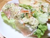 ドトールコーヒーミラノサンドCチキンと生ハムのアボカドソースゆず胡椒風味をいただきました★いつものおいしさ人気のサラダミラノ★レギュラーメニューに仲間入り軽くトーストされたソフトフランス中身を確認レタス、生ハム、隠し味にゆず胡椒を加えたクリーミーなアボカドソースで合えた蒸し鶏ニンジ… 2013/04/27