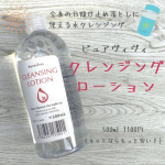 . ピュアヴィヴィ クレンジングローション ◼︎500ml 保湿もできちゃう水のクレンジング💙 . 無香料•無着色•ノンオイル•ノンパラベン•アルコールフリー•カチオン性活性剤不使用でお肌に優しい☺️✨ . 拭き取り化粧水なのに、目にしみたりせず、スルッとメイクがおちます😍 . 乾燥せず、肌がしっとりするので 本当にクレンジング?っていう感覚✨ . 大容量でたっぷりなのも嬉しいです🥰 #ピュアヴィヴィ #Purevivi #くすみ #保湿クレンジング #マツエクOK #monipla #Purevivi_fan 2020/06/02