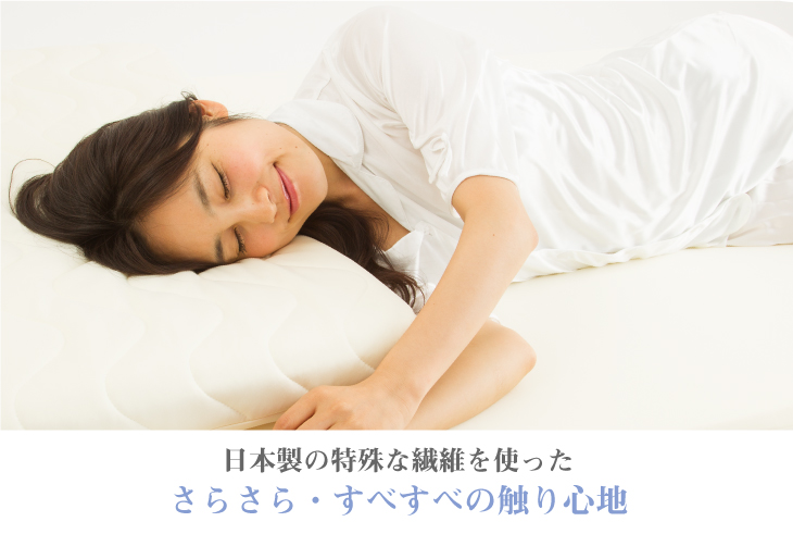 独特の柔らかな肌触りに加え、糸自体が「吸汗・速乾性」を持つため、いつでもサラサラです。