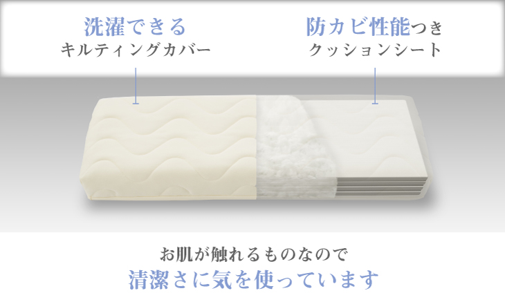 4枚のクッションシートには高い「防カビ性」を付加。洗濯なしでも清潔に保てます。