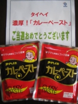 タイヘイ株式会社さまよりタイヘイ懐かしの『カレーペースト』が届きました!ご家族みなさんでおいしく食べていただけるよう、リンゴと蜂蜜のマイルドさにバナナの甘みを加えたスパイスがほどよいまろやかな味のカレーペーストですペーストなので溶け残る心配がなく、忙しい時にも短時間で濃厚なカレーができあがります… 2010/04/01