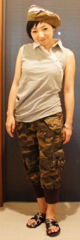 トト様がこのコーデ見て「大佐だ」とネーミング 私も結構気に入ってます 帽子は私の手作りです TOPSはA/T パンツはトト様と一緒に愛用している これまたブランドが読めないんだけど、なんか本格的に 迷彩服つくる会社のとかなんとかトト様のお話です スタッズサンダルは、トリココム… 2011/08/24