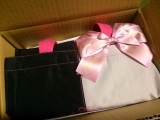 届きましたシンクビー!からプレゼントが!箱をあけるとリボンのついた布のバッグこんなリボンのついた布製バッグをあけると…シンクビーの刻印の入った箱がふたをあけますと…その箱の中にもバッグ状の袋 2015/02/08