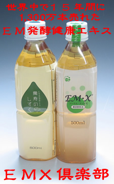 そして、世界の予防医学分野で注目されているEMX発酵飲料「萬寿のしずく」(まんじゅのしずく)を専門で販売している