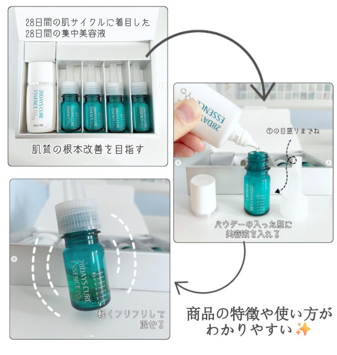 他の投稿をみる ▷▷@nagi_skin_care HINアクネスラボ 28デイズキュアエッセンス 0.3gパウダー4本/30ml美容液1本 ¥7920(税込) 28日間の肌サイクルに着目した 集中美容液♡ 高濃度に配合された 「ホルモンバランス調整成分」と 「エイジング成分」で肌の本質改善を 目指した美容液💓 03gのパウダーに30mlの美容液を 7の目盛りまで注ぐと美容液完成✨ 朝晩使用量0.5mlを目安に使用♡ 7日間で使い切れて、28日間新鮮な 美容液が使えるので良かったです😆 お肌はモチモチしてすごく 調子が良かったです✨ 気になる方はチェックしてね☑︎ #PR #アクネスラボ #HINアクネスラボ #28デイズキュアエッセンス #肌質改善 #集中美容液 #ターンオーバー #相澤皮膚科 #相澤皮フ科 #ドクターズコスメ #毛穴ケア #APPS #monipla #acneslabo_fan 2025/10/25