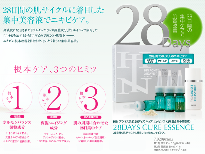 「HINアクネスラボ 28デイズキュアエッセンス」を使用していただき、