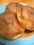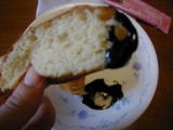 オカラをたっぷり使ってパン生地に練りこみ、カシス風味の黒酵母βグルカン入り黒酢ドリンクを加えたという、 黒酵母黒酢パン 食感はすごくやわらかくて、ふわっとカシスの風味が広がります でも、ちょっと普通のパンよりもクセがあるかな黒酢の味はわからないですけどね 何もつけないで食べるのはど… 2009/08/09