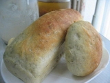 ノンオイルコーティングのレーズンを頂いたので、 レーズン酵母を作り、元種から自家製の天然酵母パンを 作り始めました これが出来上がりの作品 後ろのビンに、元種が入っています 正直なところ、 天然酵母パンはもちもちしてて美味しすぎます これを食べ始めると、市販の食パンに 戻れないぐらい… 2009/08/07