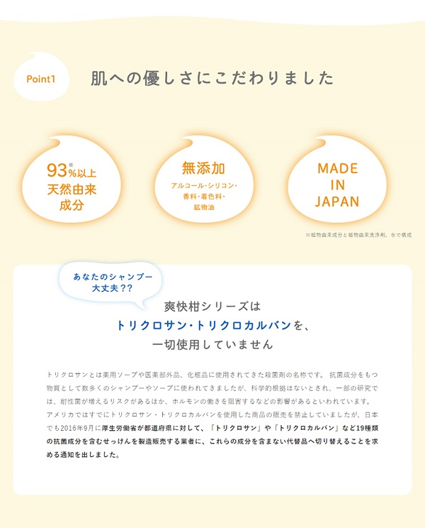アミノ酸シャンプー爽快柑が「薬用」になってグレードアップ!!生薬・甘草由来の有効成分、グリチルリチン酸ジカリウムを配合。ふけやかゆみ、毛髪・頭皮の汗臭を防ぎ、清浄に健やかに保ちます。ノンシリコン、石油系洗浄剤不使用、無香料、無着色、弱酸性。まずはお試しサイズ150mlからどうぞ。【効果・効能】ふけ・かゆみを防ぐ。毛髪・頭皮の汗臭を防ぐ。毛髪・頭皮を清浄にする。毛髪・頭皮をすこやかに保つ。