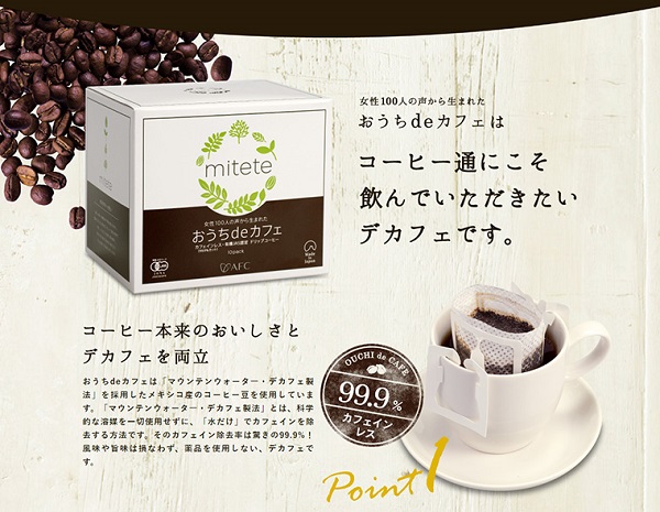 今回は、AFCのブランド【mitete】のカフェインレスコーヒー