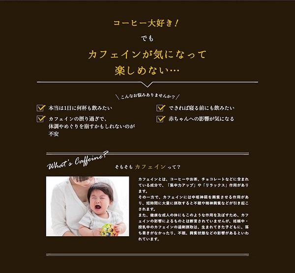 「妊娠中でも美味しいコーヒーが飲みたい」「妊活中に気にせずコーヒーを飲みたい」「コーヒーが大好き」