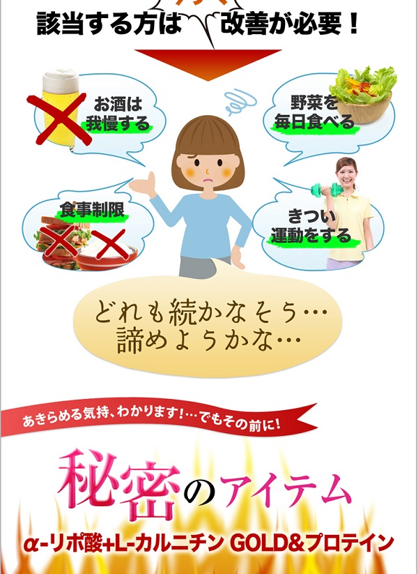 そんなお悩みを解決するサプリメント「α-リポ酸+L-カルニチンGOLD&プロテイン」現品モニターを5名募集いたします。
