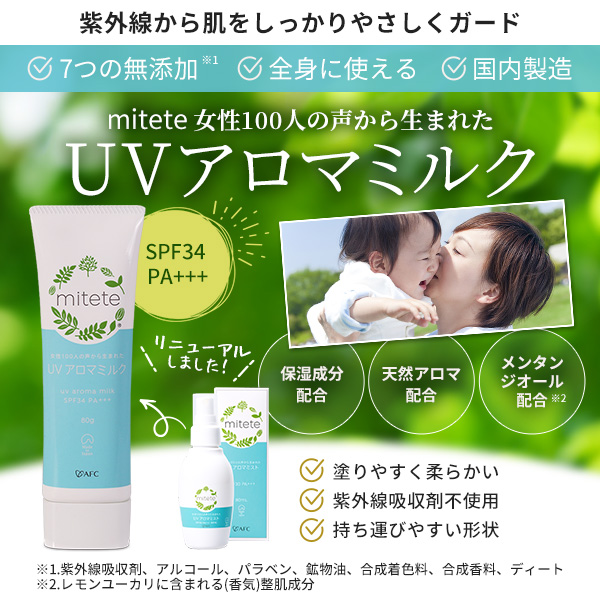 #mitete #UVアロマミルク #UVケア #紫外線 #夏 #AFC #エーエフシー #化粧下地 #日焼け止め #親子#お母さん #ママ #日やけ止め #保湿 #無添加 #赤ちゃん #子ども #日焼け #太陽